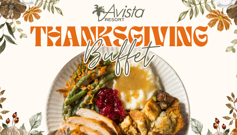 Looking for the perfect place to enjoy a stress-free and delicious Thanksgiving meal this year? Our sister property, Avista Resort, will be hosting a spectacular Thanksgiving Dinner Buffet that’s sure to delight! Guests can look forward to a festive atmosphere and a mouthwatering spread filled with classic fall favorites — from roasted turkey and savory sides to sweet seasonal desserts.